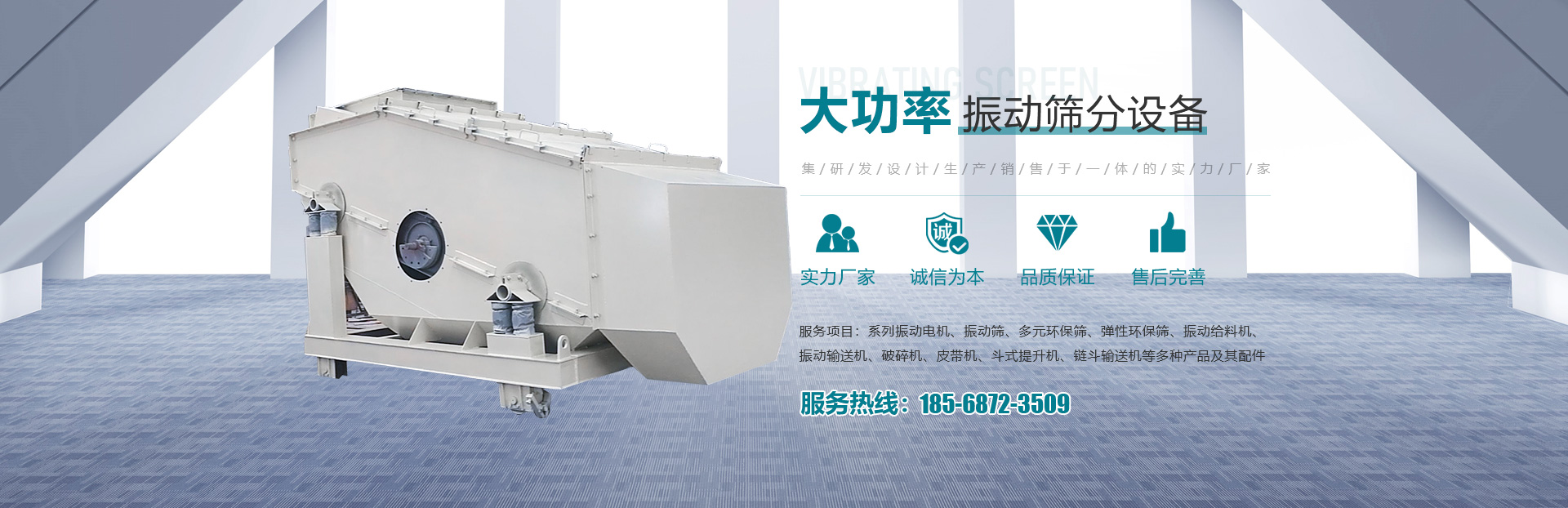 • 主要產(chǎn)品有系列振動電機(jī)、振動篩、多元環(huán)保篩、彈性環(huán)保篩、振動給料機(jī)、振動輸送機(jī)、破碎機(jī)、皮帶機(jī)、斗式提升機(jī)、鏈斗輸送機(jī)等多種產(chǎn)品